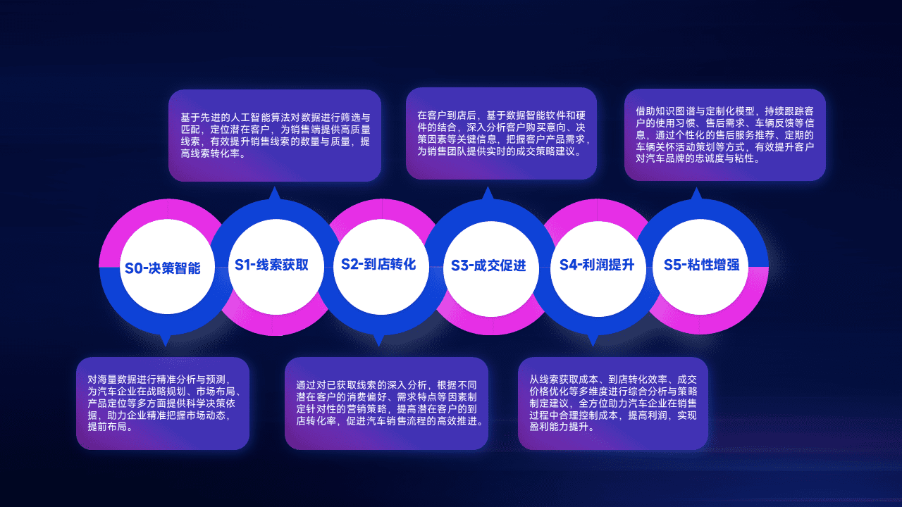 通过拓宽潜在客户来源、、、、优化线索分配并提高到店转化率,,以增强销售效率。。。。同时,,利用线索数据不断优化分析模型,,有效提升转化率,,,扩大营销影响力。。。